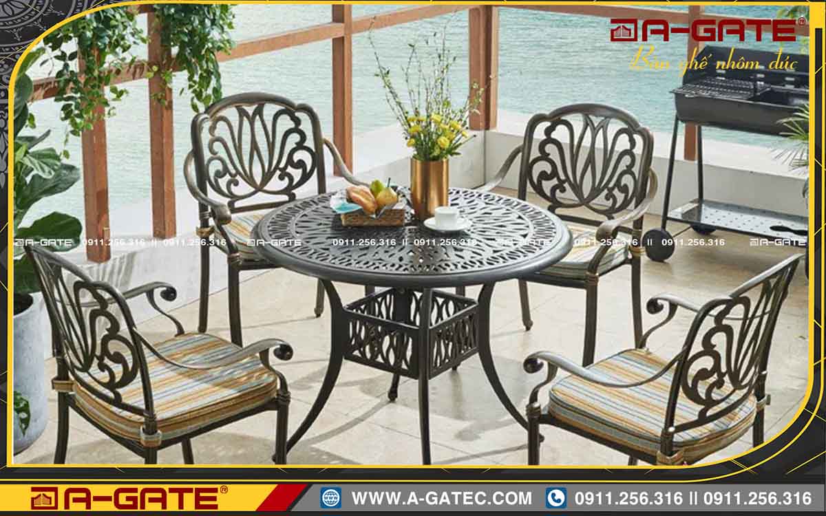 Nhôm đúc là một trong những chất liệu lý tưởng cho các sản phẩm ngoại thất nhờ khả năng chống oxy hóa, chống ăn mòn và chịu được các tác động của thời tiết. Sản phẩm bàn ghế nhôm đúc A-GATE không chỉ có tuổi thọ cao mà còn giữ được vẻ đẹp nguyên vẹn qua năm tháng. Đây là yếu tố quan trọng, đảm bảo rằng dù mưa nắng, sản phẩm vẫn giữ được độ mới mẻ và sang trọng.
